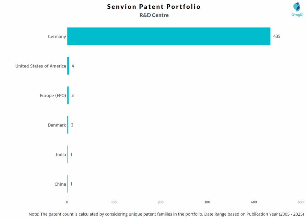 Senvion has a total of 1675 patents globally, out of which 1267 have been granted. Of these 1675 patents, more than 21% patents are active. Germany is where Senvion has filed the maximum number of patents, followed by Denmark and Europe (EPO). Parallelly, Germany seems to be the main focused R&D centre and also is the origin country of Senvion.