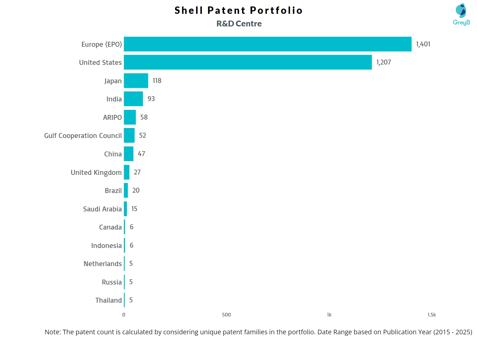 Shell has a total of 12506 patents globally. These patents belong to 5990 unique patent families. Out of 12506 patents, 8658 patents are active.