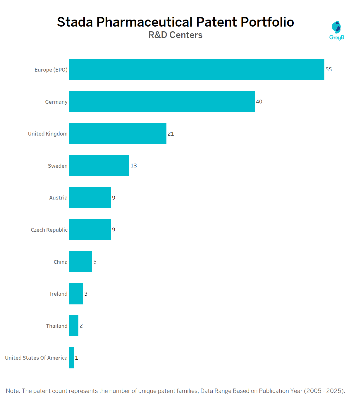 How Many Patents did Stada Pharmaceutical File in Different Countries?
