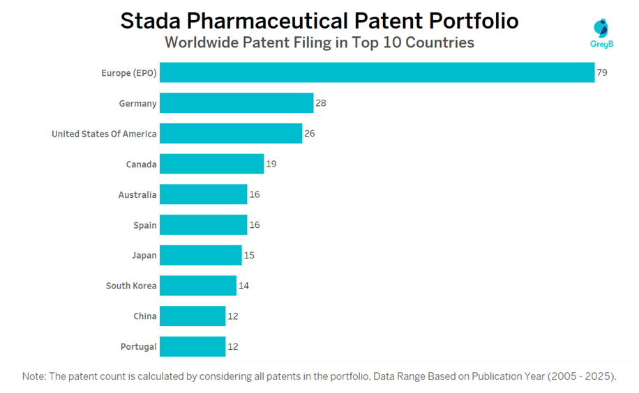 Top Countries in which Stada Pharmaceutical Filed Patents