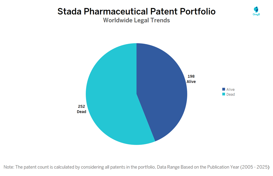 How many Stada Pharmaceutical patents are Alive/Dead?