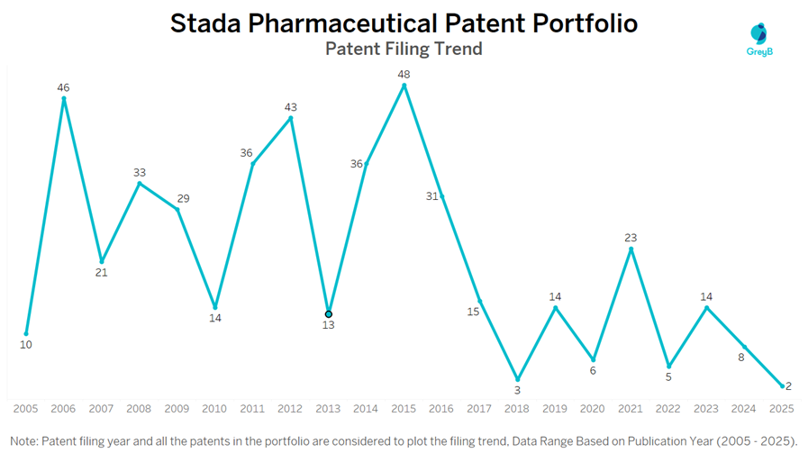 How Many Patents did Stada Pharmaceutical File Every Year?