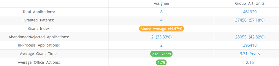Stem Cell Medicine (Excluding its subsidiaries) has filed 8 patent applications at USPTO so far (Excluding Design and PCT applications). Out of these 4 has been granted leading to a grant rate of 66.67%.