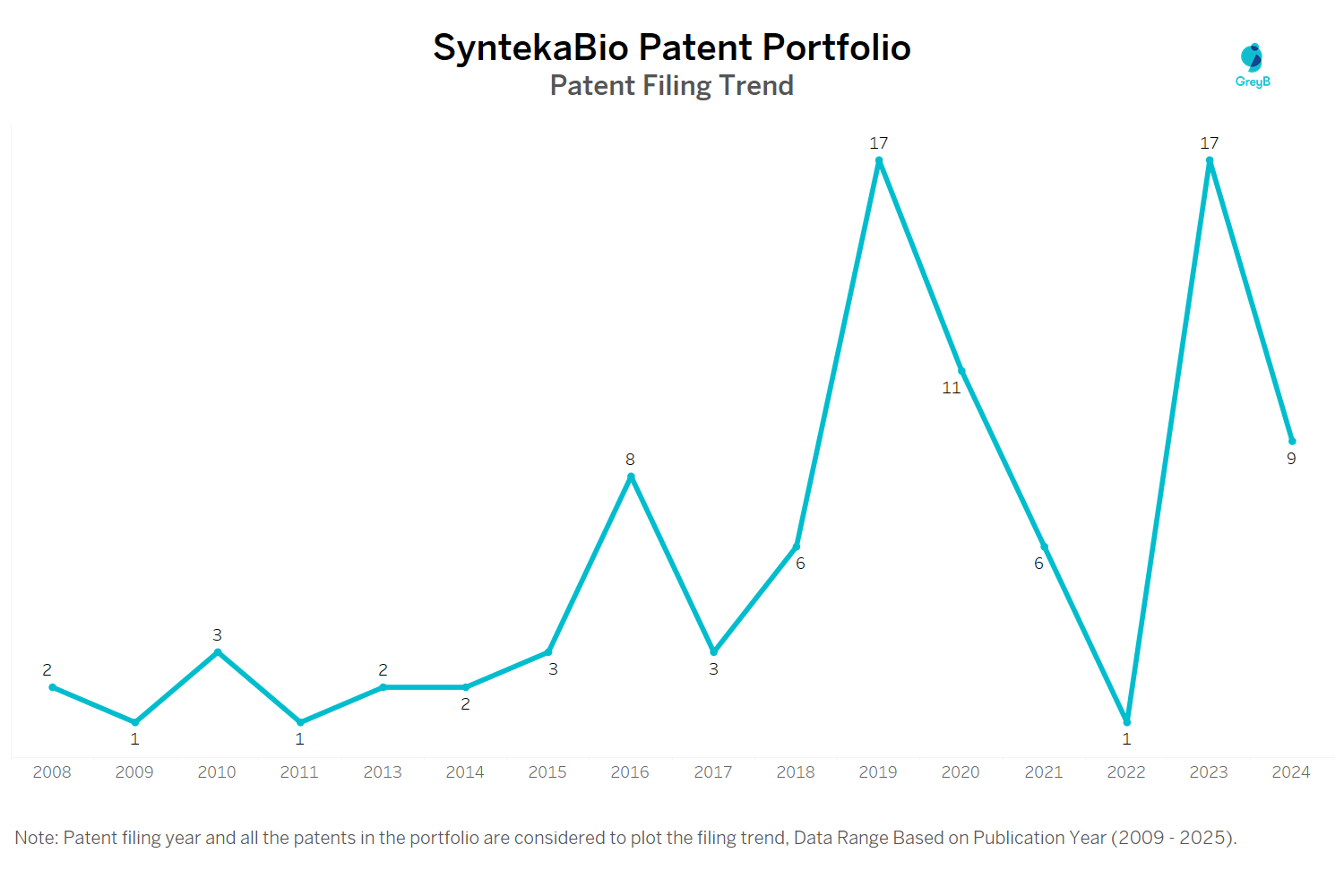 SyntekaBio has a total of 92 patents globally. These patents belong to 38 unique patent families. Out of 92 patents, 53 patents are active.