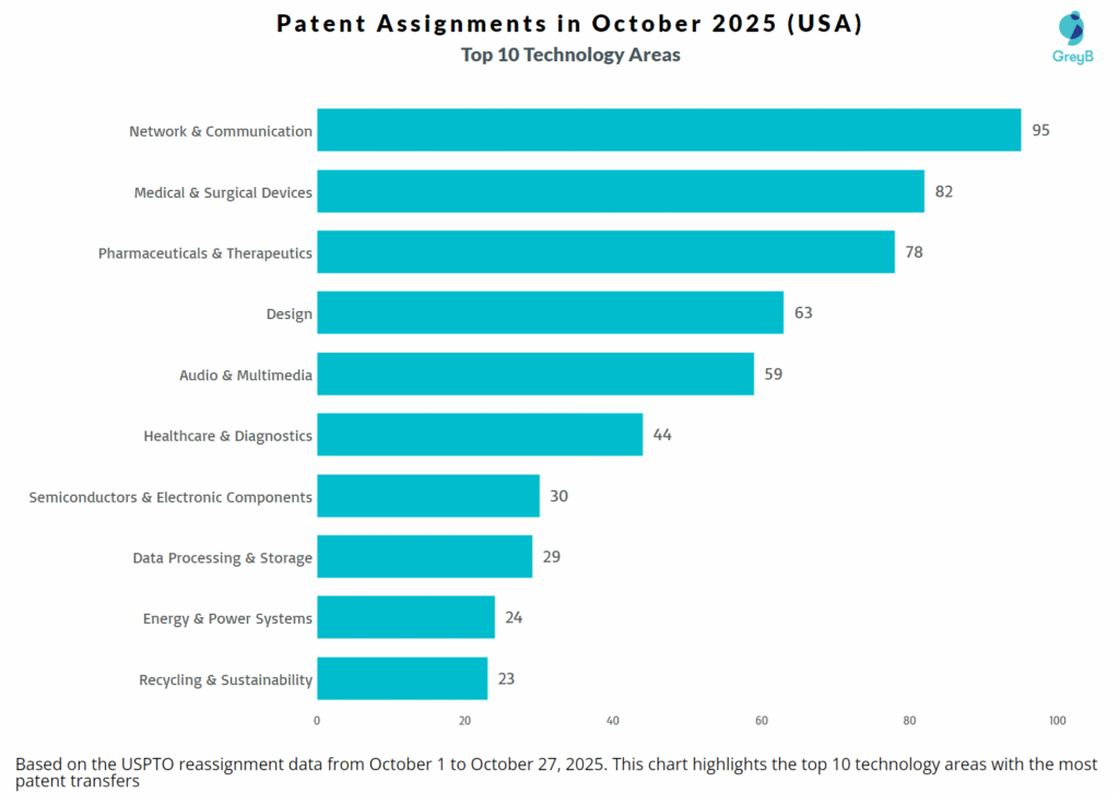 October’s patent assignments have shed light on dynamic shifts across industries, with the medical technology sector attracting significant attention. The growing demand for patents in minimally invasive surgery, diagnostic equipment, and wearable health technologies highlights a surge in innovations that integrate sensing, data processing, and therapeutic delivery. These trends open up numerous opportunities for companies holding portfolios in connected healthcare and medical devices.