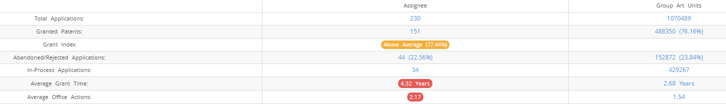 TerraPower (Excluding its subsidiaries) has filed 230 patent applications at USPTO so far (Excluding Design and PCT applications). Out of these 151 have been granted leading to a grant rate of 77.44%.