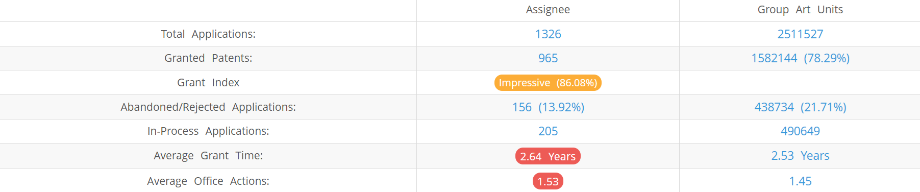 Below are the key stats of Tesla’s patent prosecution at the USPTO.