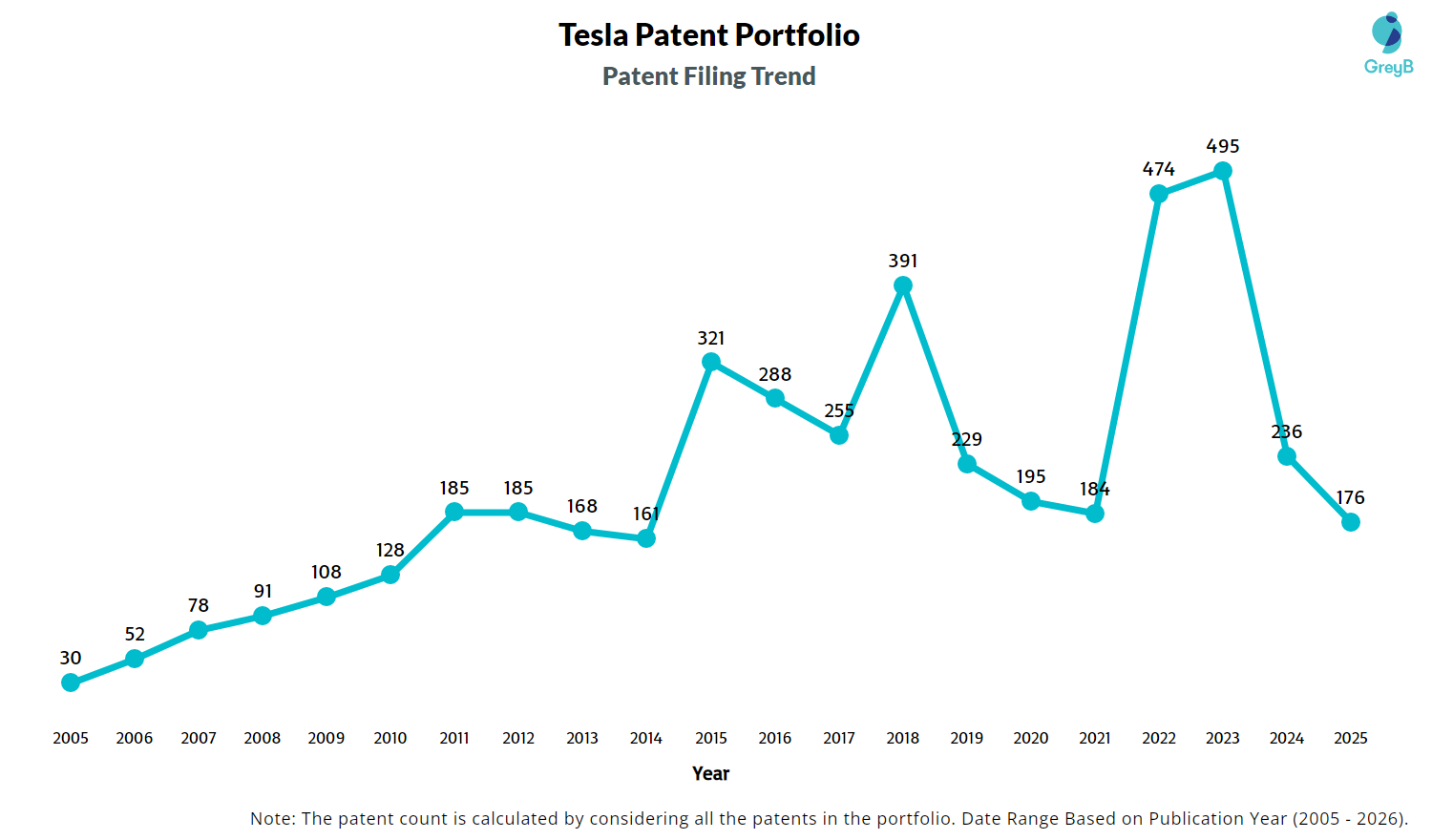 Tesla’s M&A activity has contributed meaningfully to its patent portfolio beyond organic filing: