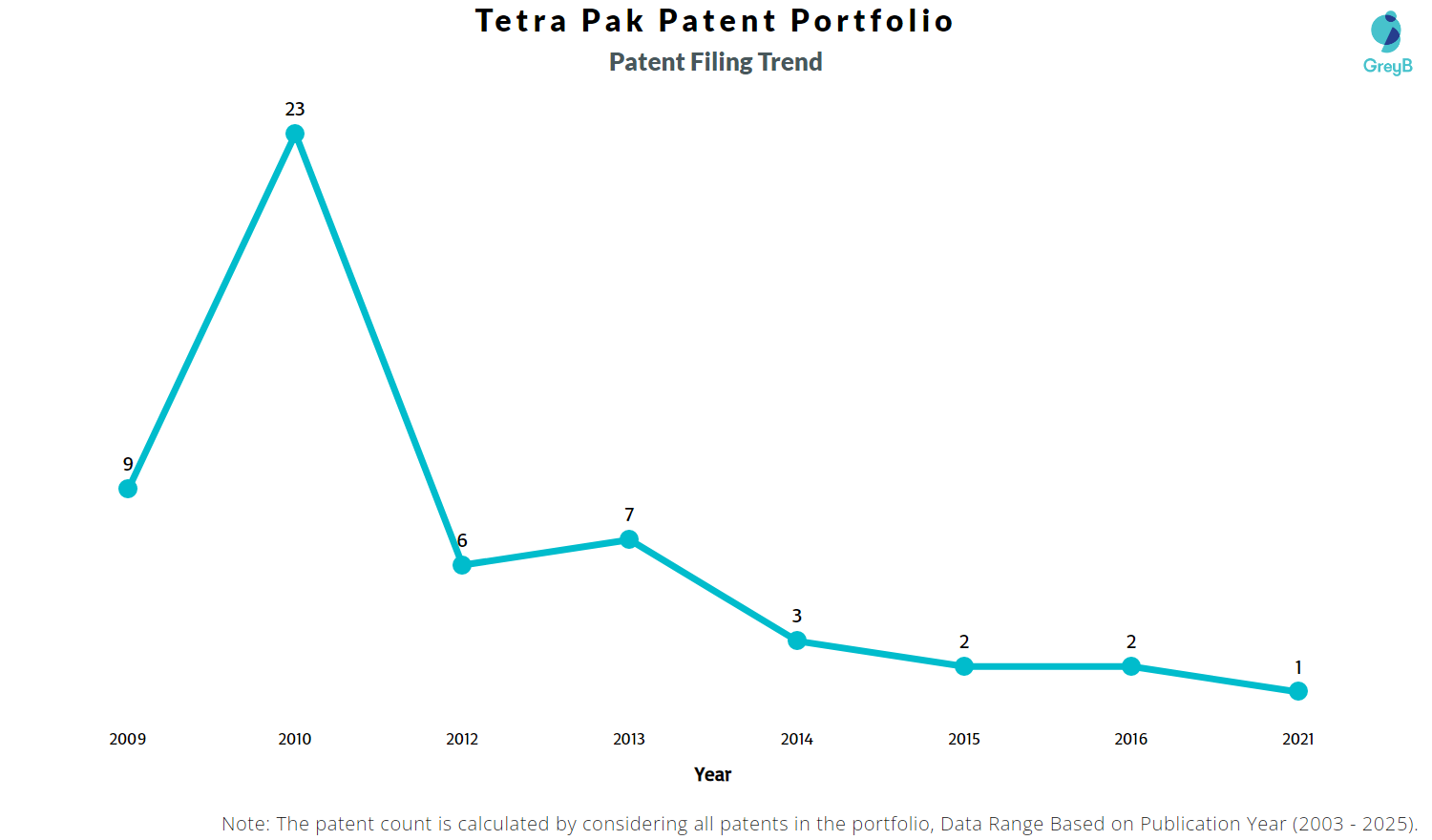| Year of Patents Filing or Grant | Tetra Pak Applications Filed | Tetra Pak Patents Granted |
