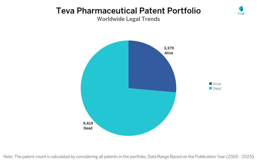 How many Teva Pharmaceutical patents are Alive/Dead?