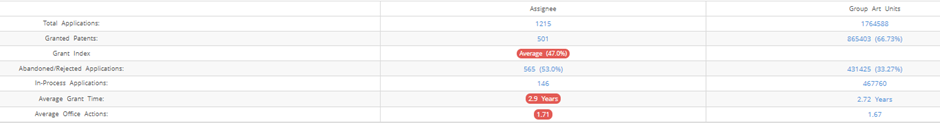 Teva Pharmaceutical (Excluding its subsidiaries) has filed 1215 patent applications at USPTO so far (Excluding Design and PCT applications). Out of these 501 have been granted leading to a grant rate of 47%.
