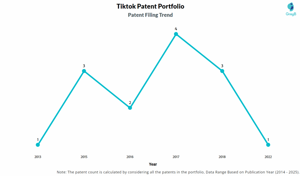 | Year of Patents Filing or Grant | Tiktok Applications Filed | Tiktok Patents Granted |