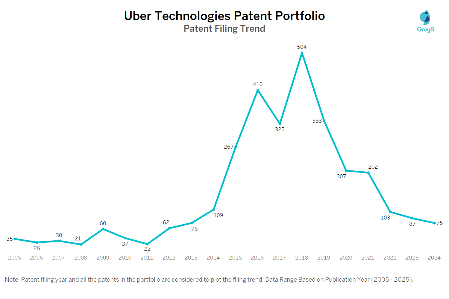 Do read about some of the most popular patents of Uber Technologies which have been covered by us in this article and also you can find Uber Technologies patents information, the worldwide patent filing activity and its patent filing trend over the years, and many other stats over Uber Technologies patent portfolio.