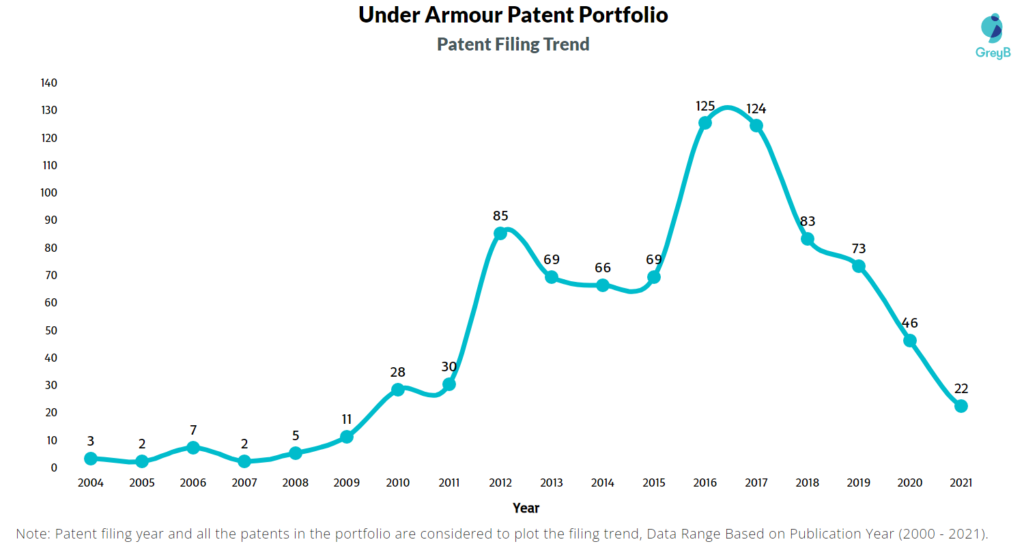 Do read about some of the most popular patents of Under Armour which have been covered by us in this article and also you can find Under Armour patents information, the worldwide patent filing activity and its patent filing trend over the years, and many other stats over Under Armour patent portfolio.