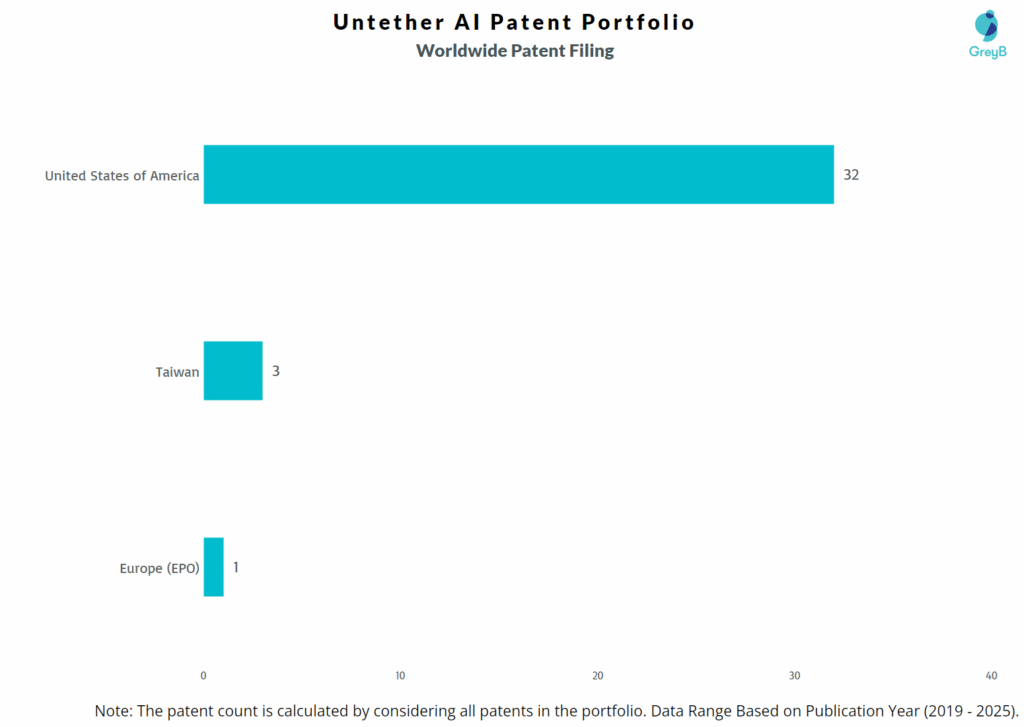 Untether AI has a total of 42 patents globally, out of which 18 have been granted. Of these 42 patents, more than 79% patents are active. United States of America is where Untether AI has filed the maximum number of patents, followed by Taiwan and Europe (EPO). Parallelly, United States of America seems to be the main focused R&D centre and Canada is the origin country of Untether AI.