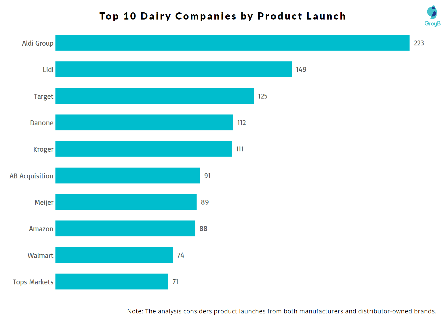 Overall, the data shows that dairy innovation in the U.S. is led by a mix of multinational companies, category specialists, and emerging challengers, creating a competitive environment where continuous product development is essential.