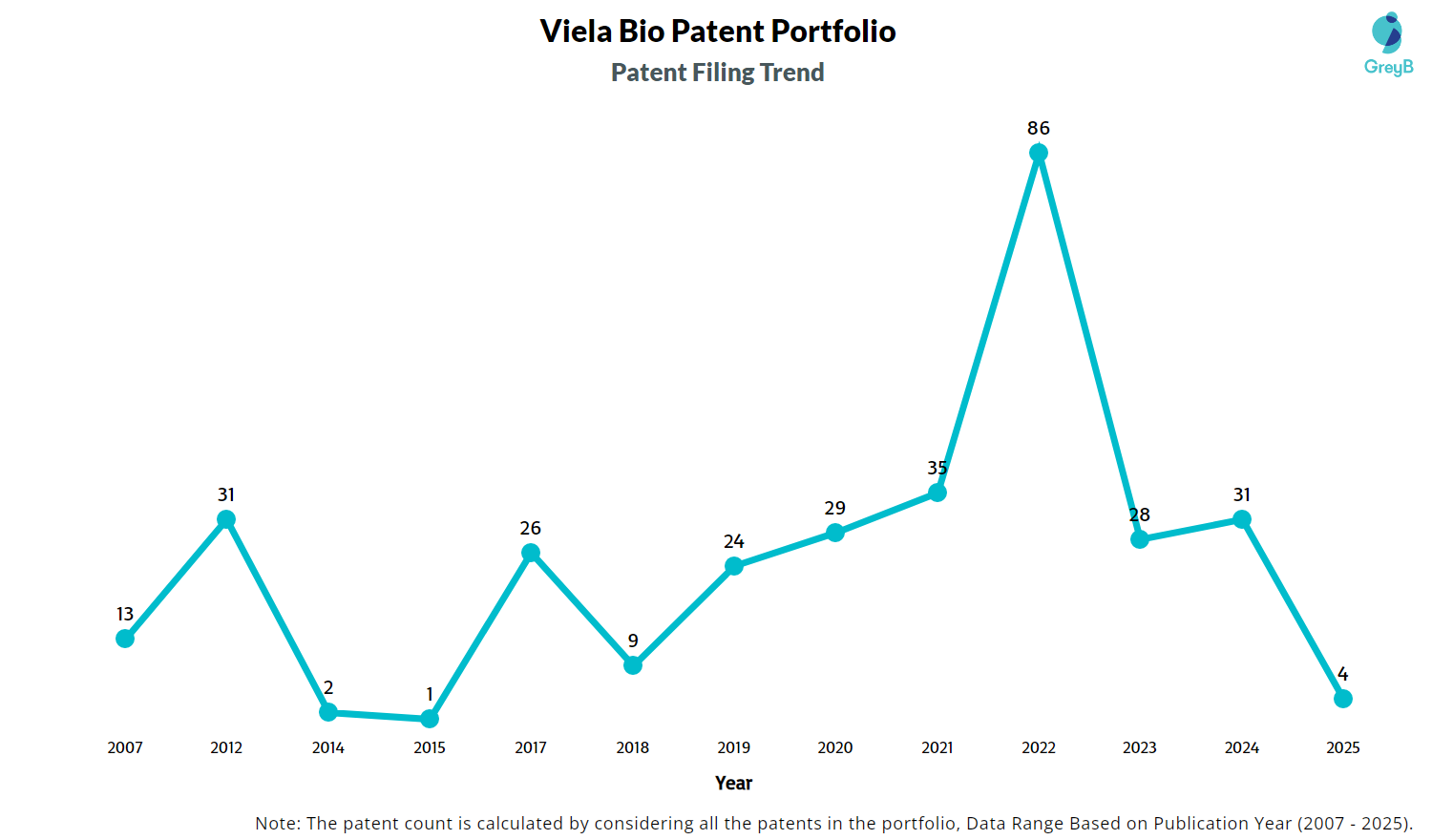 Below are the key stats of Viela Bio patent prosecution at the USPTO.