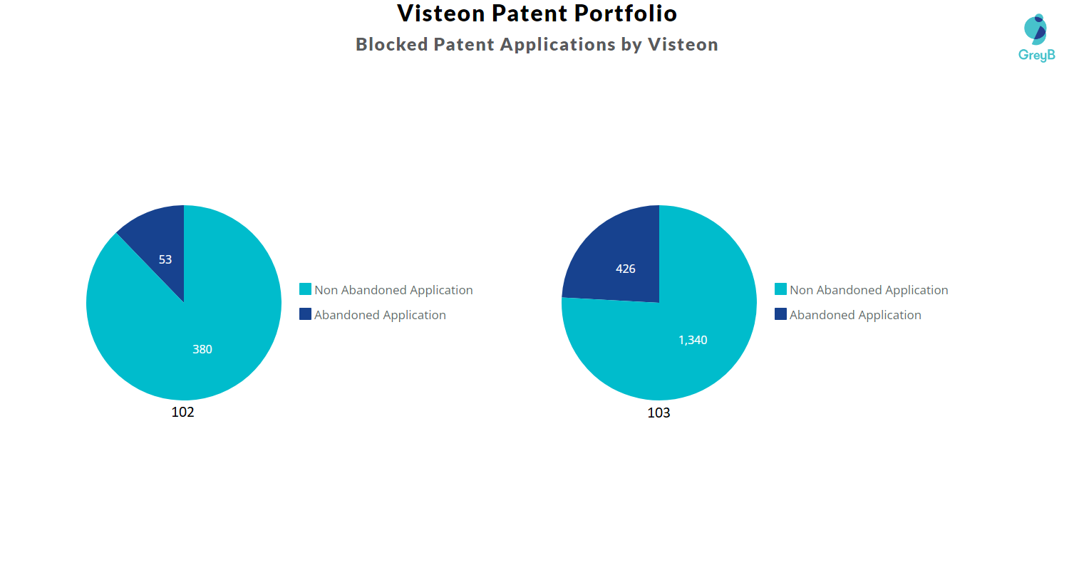 Count of 102 and 103 Type Rejections based on Visteon Patents