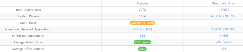 Below are the key stats of Walmart’s patent prosecution at the USPTO.