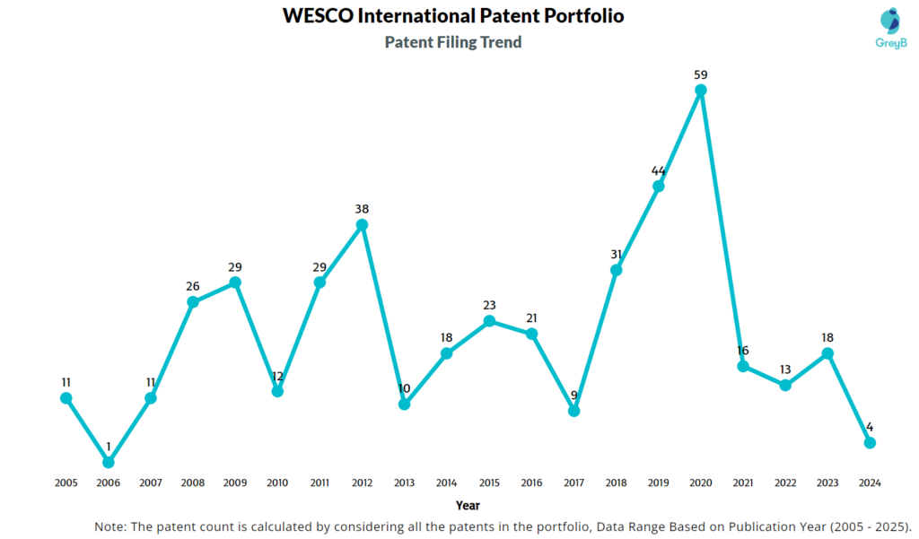 | Year of Patents Filing or Grant | WESCO International Applications Filed | WESCO International Patents Granted |
