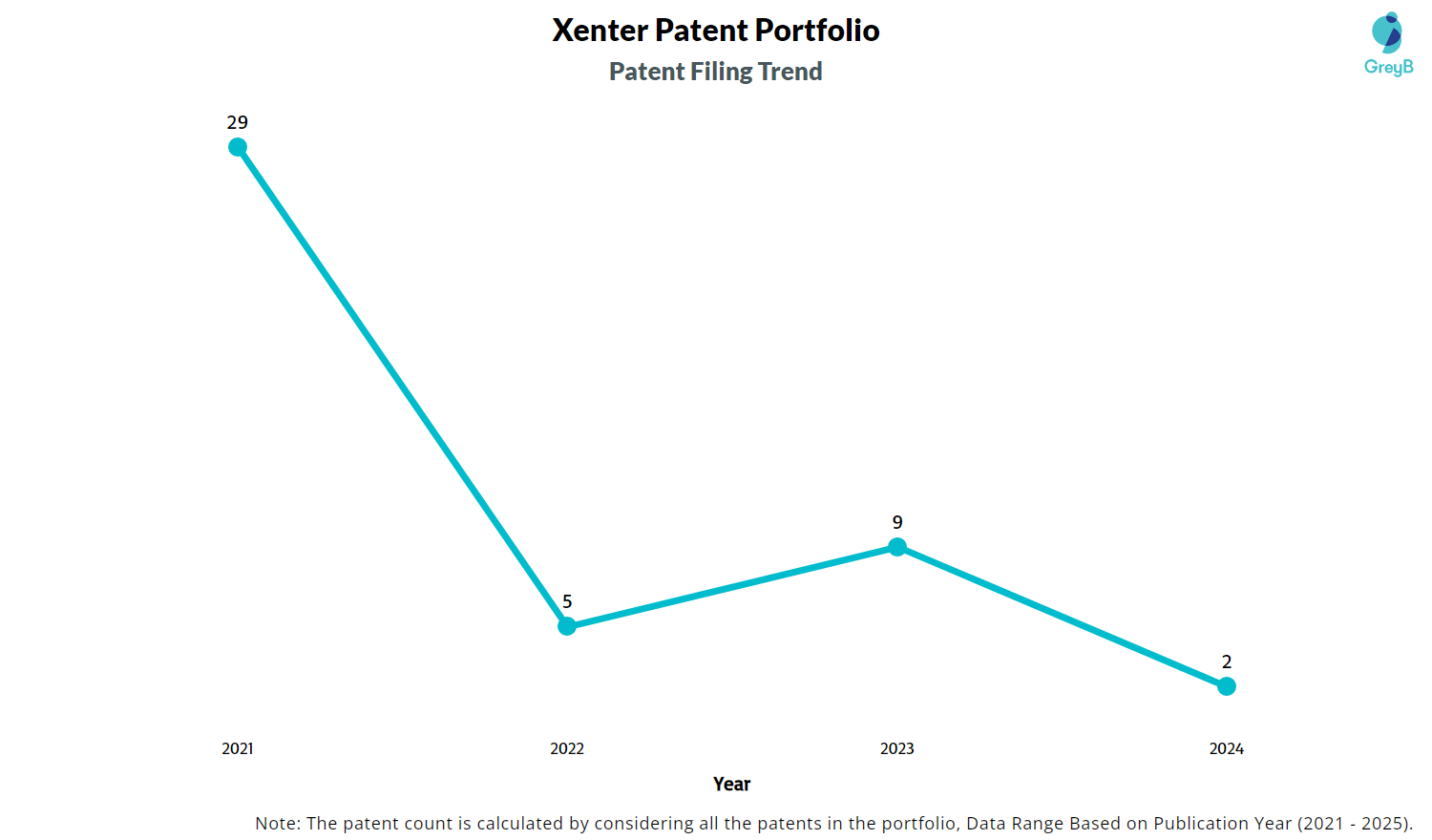 | Year of Patents Filing or Grant | Xenter Applications Filed | Xenter Patents Granted |