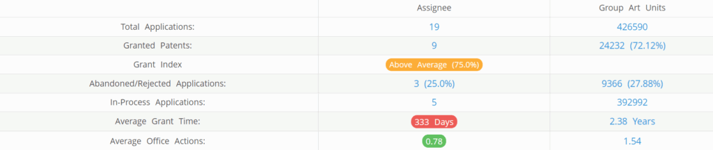 XinThera (Excluding its subsidiaries) has filed 19 patent applications at USPTO so far (Excluding Design and PCT applications). Out of these 9 have been granted leading to a grant rate of 75.0%.
