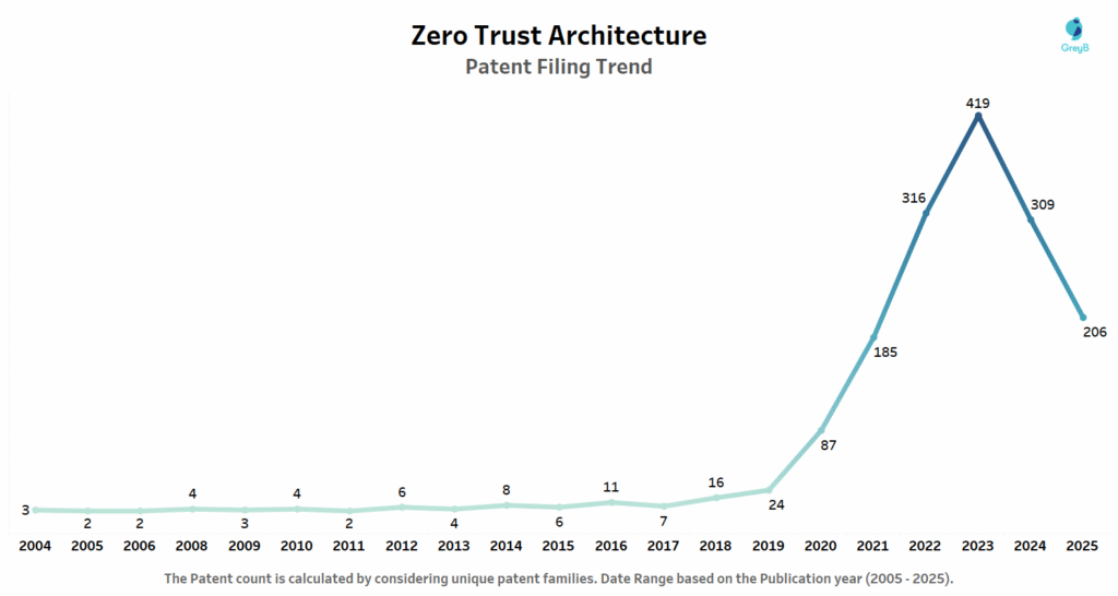 Over the past two decades, ZTA has evolved from a conceptual framework into a cornerstone of enterprise security strategy. This evolution is reflected in the surge of patent filings, signalling robust innovation and growing investment in Zero Trust technologies. From identity and access management (IAM) to AI-powered threat detection, the patent landscape reveals how organizations are leveraging cutting-edge tools to fortify digital infrastructure.